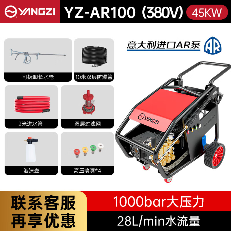 揚子高壓清洗機YZ-AR 工業用除銹除油漆車間清洗機,進口AR泵高性能耐高壓,定制高壓管柔韌耐用高硬度不漏水,感應系統關槍停機。